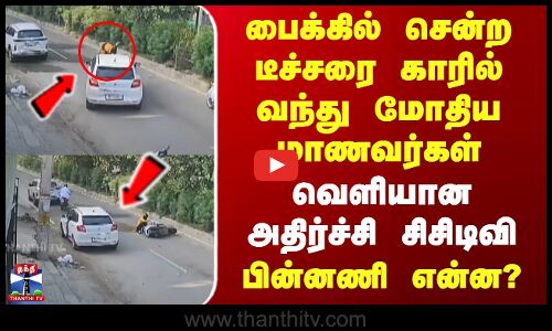 பைக்கில் சென்ற டீச்சரை காரில் வந்து மோதிய மாணவர்கள் - வெளியான அதிர்ச்சி சிசிடிவி.. பின்னணி என்ன?