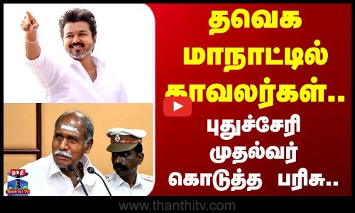 TVK Vijay | Puducherry | Police | தவெக மாநாட்டில் காவலர்கள்.. புதுச்சேரி முதல்வர் கொடுத்த பரிசு..