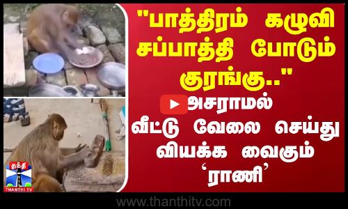 “பாத்திரம் கழுவி சப்பாத்தி போடும் குரங்கு..“ - அசராமல் வீட்டு வேலை செய்து வியக்க வைகும் `ராணி’