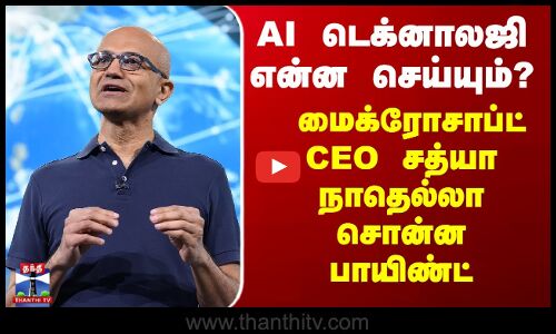 மக்களையும், நிறுவனங்களையும் மேம்படுத்துவதே ஏ.ஐ. தொழில்நுட்பம் என மைக்ரோசாப்ட் நிர்வாக அதிகாரியும் தலைவருமான சத்யா நாதெல்லா தெரிவித்துள்ளார். மும்பையில் ஏ.ஐ. டூர் அமர்வில் உரையாற்றிய அவர், தொழில்நுட்பத்தைப் பற்றி நாம் பேசும்போது, அது இப்போது நம்மால் என்ன செய்ய முடியும் என்பதை மறுபரிசீலனை செய்ய அனுமதிப்பதாக கூறினார். முன்னேற்றப் பாதையில் ஓர் அடி முன்வைக்க ஏஐ தொழில்நுட்பம் பயன்படுவதாக கூறினார்.