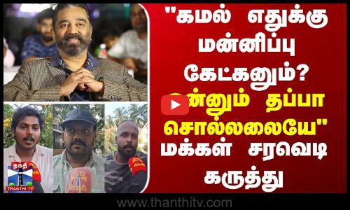 நடிகர் கமல்ஹாசன் கன்னட மொழி பற்றி பேசிய விவகாரம் கர்நாடகாவில் பூதாகரமாக்கப்பட்டுள்ள நிலையில், இதுகுறித்து பொதுமக்கள் என்ன நினைக்கிறார்கள் என பார்ப்போம்...