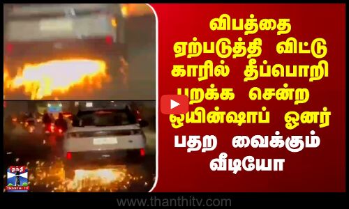 Bengaluru | விபத்தை ஏற்படுத்தி விட்டு காரில் தீப்பொறி பறக்க சென்ற ஒயின்ஷாப் ஓனர் - பதற வைக்கும் வீடியோ