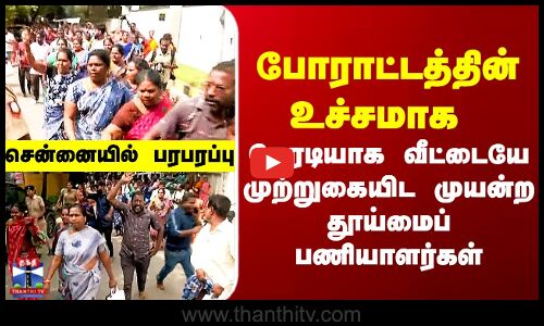 Workers Protest Chennai | போராட்டத்தின் உச்சமாக வீட்டையே முற்றுகையிட முயன்ற தூய்மைப் பணியாளர்கள்