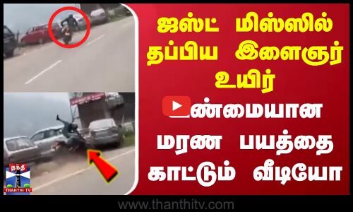 ஜஸ்ட் மிஸ்ஸில் தப்பிய இளைஞர் உயிர் - உண்மையான மரண பயத்தை காட்டும் வீடியோ