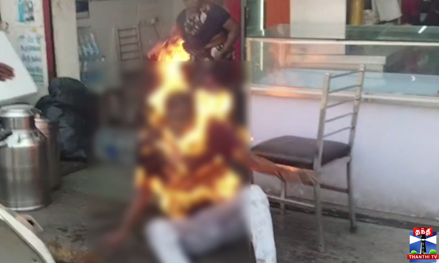இவர் இன்று திடீரென தான் வேலை செய்யும் ஹோட்டலின் எதிரே சாலையின் நடுவே உள்ள தடுப்பு மீது ஏறி நின்றவாறு பெட்ரோலை உடல் முழுவதும் ஊற்றிக் கொண்டு தீயிட்டு தற்கொலைக்கு முயற்சி செய்த சம்பவம் பரபரப்பை ஏற்படுத்தி உள்ளது. இதுகுறித்து தகவல் அறிந்து வந்த ரெட்டியார்பாளையம் போலீசார் சம்பவம் இடத்திற்கு வந்து வாலிபர் உடலில் பற்றி எறிந்த தீயினை அணைத்து ஆம்புலன்ஸ் மூலம் மருத்துவமனைக்கு சிகிச்சைக்காக அனுப்பி வைத்தனர். கள்ளகாதல் விவகாரத்தில் ஹோட்டலில் இருந்து நீக்கப்பட்ட நிலையில், வெங்கடேசன் ஹோட்டல் முன் தீக்குளித்து தற்கொலைக்கு முயன்றதது தெரிய வந்துள்ளது.
