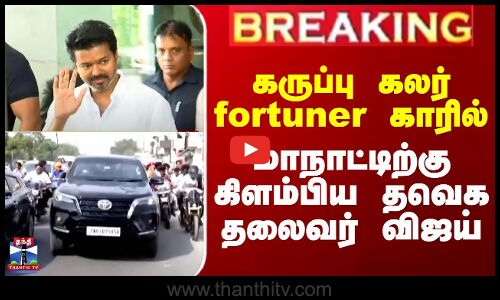 #BREAKING || கருப்பு கலர் fortuner காரில் மாநாட்டிற்கு கிளம்பிய தவெக தலைவர் விஜய்