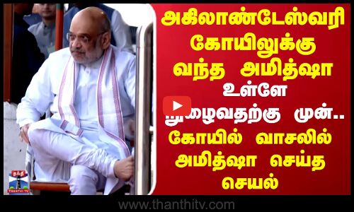 அகிலாண்டேஸ்வரி கோயிலுக்கு வந்த அமித்ஷா.. கோயில் வாசலில் செய்த செயல்