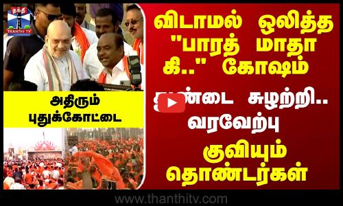 Amit Shah | துண்டை சுழற்றி அமித்ஷாவுக்கு வரவேற்பு.. விடாமல் ஒலித்த "பாரத் மாதா கி.." கோஷம்