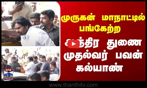 மதுரையில் முருகன் மாநாட்டில் பங்கேற்க ஆந்திர துணை முதல்வர் பவன் கல்யாண் வருகை தந்துள்ளார்.