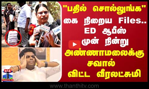 "பதில் சொல்லுங்க "கை நிறைய Files..ED ஆபீஸ் முன் நின்று அண்ணாமலைக்கு சவால் விட்ட வீரலட்சுமி