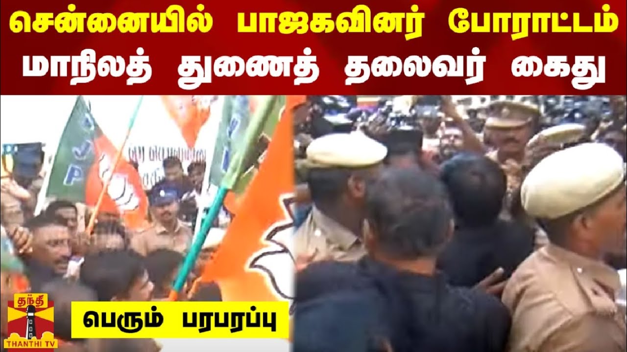 சென்னையில் பாஜகவினர் போராட்டம்.. மாநிலத் துணைத் தலைவர் கைது.. பெரும் பரபரப்பு