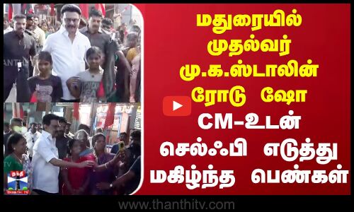 மதுரையில் முதல்வர் மு.க.ஸ்டாலின் ரோடு ஷோ.. CM-உடன் செல்ஃபி எடுத்து மகிழ்ந்த பெண்கள்