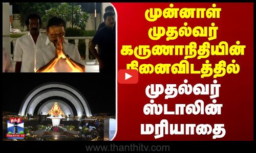 முன்னாள் முதல்வர் கருணாநிதியின் நினைவிடத்தில் முதல்வர் ஸ்டாலின் மரியாதை