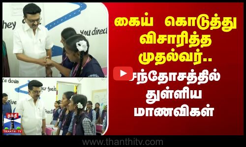 CM Stalin | School Student | கை கொடுத்து விசாரித்த முதல்வர்.. சந்தோசத்தில் துள்ளிய மாணவிகள்