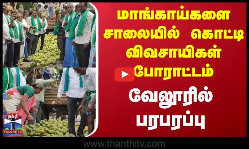 மாங்காய்களை சாலையில் கொட்டி விவசாயிகள் போராட்டம் - வேலூரில் பரபரப்பு