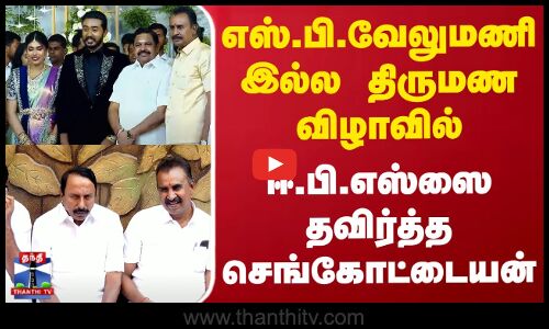 எஸ்.பி.வேலுமணி இல்லத் திருமண விழாவில், அ.தி.மு.க பொதுச் செயலாளர் எடப்பாடி பழனிசாமியை சந்திப்பதை முன்னாள் அமைச்சர் செங்கோட்டையன் தவிர்த்தார். கோவை கொடிசியா மையத்தில் எஸ்.பி.வேலுமணி இல்ல திருமண வரவேற்பு நிகழ்ச்சி நடைபெற்றது. இதில் எடப்பாடி பழனிச்சாமி கலந்து கொண்டு மணமக்களை வாழ்த்தினார். இந்நிகழ்வில், எடப்பாடி பழனிச்சாமியும், செங்கோட்டையனும் நேரில் சந்தித்து கொள்வார்கள் என எதிர்பார்க்கப்பட்டது. ஆனால், திருமண வரவேற்பு துவங்கும் முன்னரே மணமக்களை செங்கோட்டையன் சந்தித்து வாழ்த்து தெரிவித்துவிட்டு புறப்பட்டுச் சென்றார்