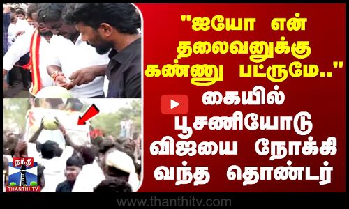 "என் தலைவனுக்கு கண்ணு பட்ருமே.." கையில் பூசணியோடு விஜயை நோக்கி வந்த தொண்டர்