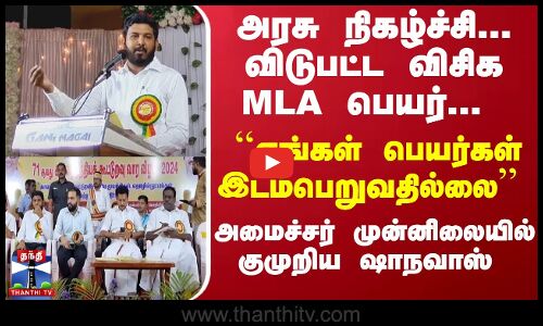 நாகப்பட்டினத்தில் 71-வது அனைத்திந்திய கூட்டுறவு வார விழா நடைபெற்றது. அமைச்சர் அன்பில் மகேஷ் பொய்யாமொழி, தமிழ்நாடு வாரியத் தலைவர்கள் கௌதமன், மதிவாணன், கீழ்வேளூர் மார்க்சிஸ்ட் கம்யூனிஸ்ட் எம்.எல்.ஏ. நாகை மாலி, வி.சி.க. நாகை எம்.எல்.ஏ. ஷாநவாஸ் உள்ளிட்டோர் கலந்துகொண்டனர். நிகழ்ச்சி மேடையில் பேசிய ஷாநவாஸ், பிளக்ஸ் பேனரில் தனது பெயர் இடம் பெறாததை சுட்டிக்காட்டினார். இதேபோல், பிளக்ஸ் போர்டில் பெயரை போடுவதில்லை என கீழ்வேளூர் சட்டமன்ற உறுப்பினர் நாகை மாலி கூறினார். அதனைத் தொடர்ந்து பேசிய அமைச்சர் அன்பில் மகேஷ், இதுபோன்று நிகழ்வு இனி தொடராது என்று சூசகமாக குறிப்பிட்டார்.
