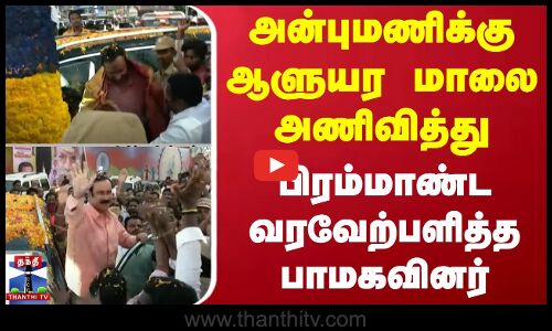 அன்புமணிக்கு ஆளுயர மாலை அணிவித்து பிரம்மாண்ட வரவேற்பளித்த பாமகவினர்