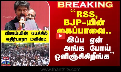 RSS, BJP-யின் கைப்பாவை.. இப்ப ஏன் அங்க போய் ஒளிஞ்சிகிறீங்க'' - விஜய் பேச்சில் எதிர்பாரா ட்விஸ்ட்