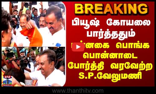 பியூஷ் கோயலை பார்த்ததும் புன்னகை பொங்க பொன்னாடை போர்த்தி வரவேற்ற S.P.வேலுமணி