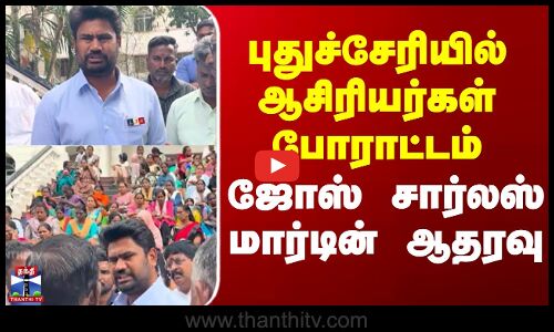 புதுச்சேரியில் பல்வேறு கோரிக்கைகளை வலியுறுத்தி ஆசிரியர்கள் போராட்டத்தில் ஈடுபட்ட நிலையில், லட்சிய ஜனநாயக கட்சித் தலைவர் ஜோஸ் சார்லஸ் மார்டின் நேரில் சந்தித்து ஆதரவு தெரிவித்தார்.