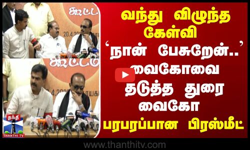 வந்து விழுந்த கேள்வி | 'நான் பேசுறேன்..' | வைகோவை தடுத்த துரை வைகோ