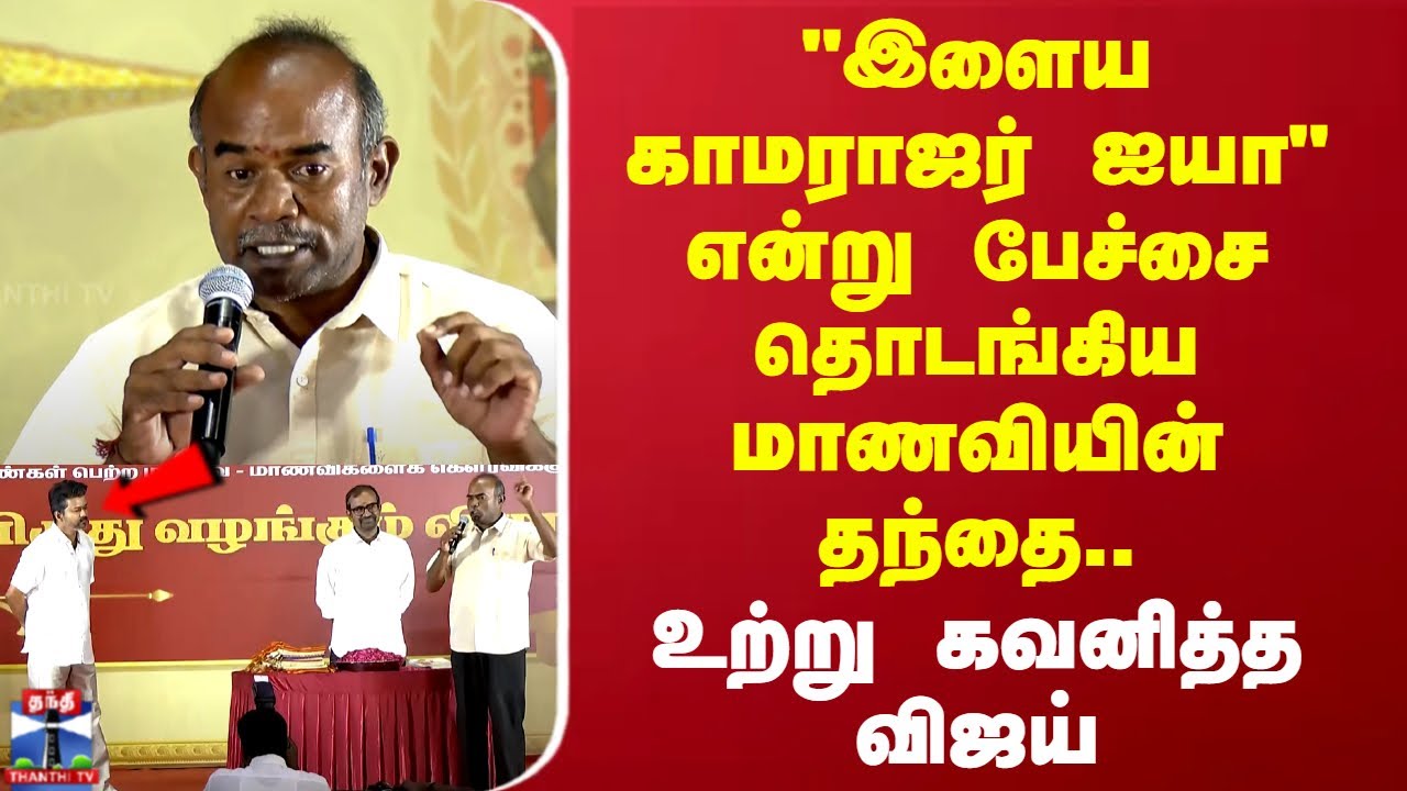 "இளைய காமராஜர் ஐயா" என்று பேச்சை தொடங்கிய மாணவியின் தந்தை.. உற்று கவனித்த விஜய்