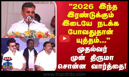 "2026 இந்த இரண்டுக்கும் இடையே நடக்க போவதுதான் யுத்தம்" முதல்வர் முன் திருமா சொன்ன வார்த்தை!