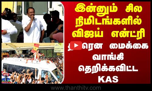 TVK Erode Vijay Campaign | இன்னும் சில நிமிடங்களில் விஜய் என்ட்ரி - திடீரென மைக்கை வாங்கி தெறிக்கவிட்ட KAS