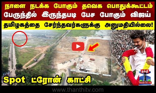 TVK | நாளை நடக்க போகும் தவெக பொதுக்கூட்டம்.. Spot ட்ரோன் காட்சி வெளியான புது தகவல்கள்..!