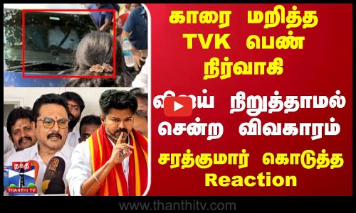 TVK | காரை மறித்த TVK பெண் நிர்வாகி.. விஜய் நிறுத்தாமல் சென்ற விவகாரம் ..சரத்குமார் கொடுத்த Reaction