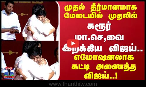 முதல் தீர்மானமாக மேடையில் முதலில் கரூர் மா.செ -வை இறக்கிய விஜய்..எமோஷனலாக கட்டி அணைத்த விஜய்..!