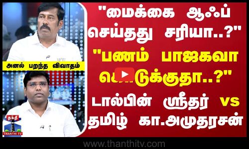 மைக்கை ஆஃப் செய்தது சரியா..? "பணம் பாஜகவா கொடுக்குதா..?" டால்பின் ஸ்ரீதர் vs தமிழ் கா.அமுதரசன்.. அனல் பறந்த விவாதம்