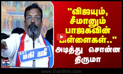 பாமகவில் ஒரு பிரிவு திமுகவுக்கு வந்தாலும் ஏற்றுக் கொள்ள மாட்டோம் என்று கூறியுள்ள விடுதலை சிறுத்தைகள் கட்ணியின் தலைவர் திருமாவளவன், நாம் தமிழர் கட்சியின் ஒருங்கிணைப்பாளர் சீமானும், தவெக தலைவர் விஜயும், பாஜகவின் பிள்ளைகள் என்று விமர்சித்தார்
