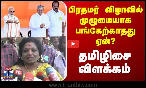 தனது தந்தைக்கு உடல்நிலை சரியில்லாத காரணத்தால்தான் பிரதமர் பங்கேற்ற விழாவில் முழுமையாக கலந்துகொள்ள முடியவில்லை என பாஜக மூத்த தலைவர் தமிழிசை சவுந்தரராஜன் விளக்கம் அளித்துள்ளார். மதுரையில் செய்தியாளர்களுக்கு அவரளித்த பேட்டியைக் காண்போம்...