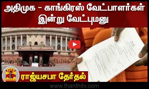 தமிழகத்தில் ராஜ்யசபா வேட்பாளர்களாக போட்டியிடும் அதிமுக, காங்கிரஸ் வேட்பாளர்கள் இன்று தங்கள் வேட்புமனுக்களை தாக்கல் செய்ய உள்ளனர்