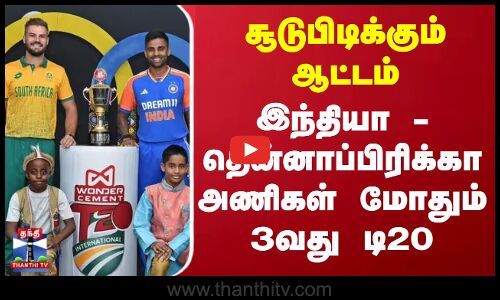 இந்தியா, தென்னாப்பிரிக்கா அணிகள் மோதும் மூன்றாவது டி20 போட்டி, சென்சூரியனில் புதன்கிழமை (இன்று) நடைபெறுகிறது. சென்சூரியனில் உள்ள சூப்பர்ஸ்போர்ட் பார்க் மைதானத்தில், இந்திய நேரப்படி இரவு 8.30 மணிக்கு தொடங்குகிறது. முதலிரண்டு போட்டிகளில் இரு அணிகளும் தலா ஒரு வெற்றி பெற்றுள்ள நிலையில், ஒன்றுக்கு ஒன்று என்ற கணக்கில் தொடர் சமநிலையில் உள்ளது. தொடரில் முன்னிலை பெற இரு அணிகளும் வெற்றிக்காக கடுமையாக போராடும் என்பதால், இந்த போட்டி விறுவிறுப்பாக அமையும் என எதிர்பார்க்கப்படுகிறது.
