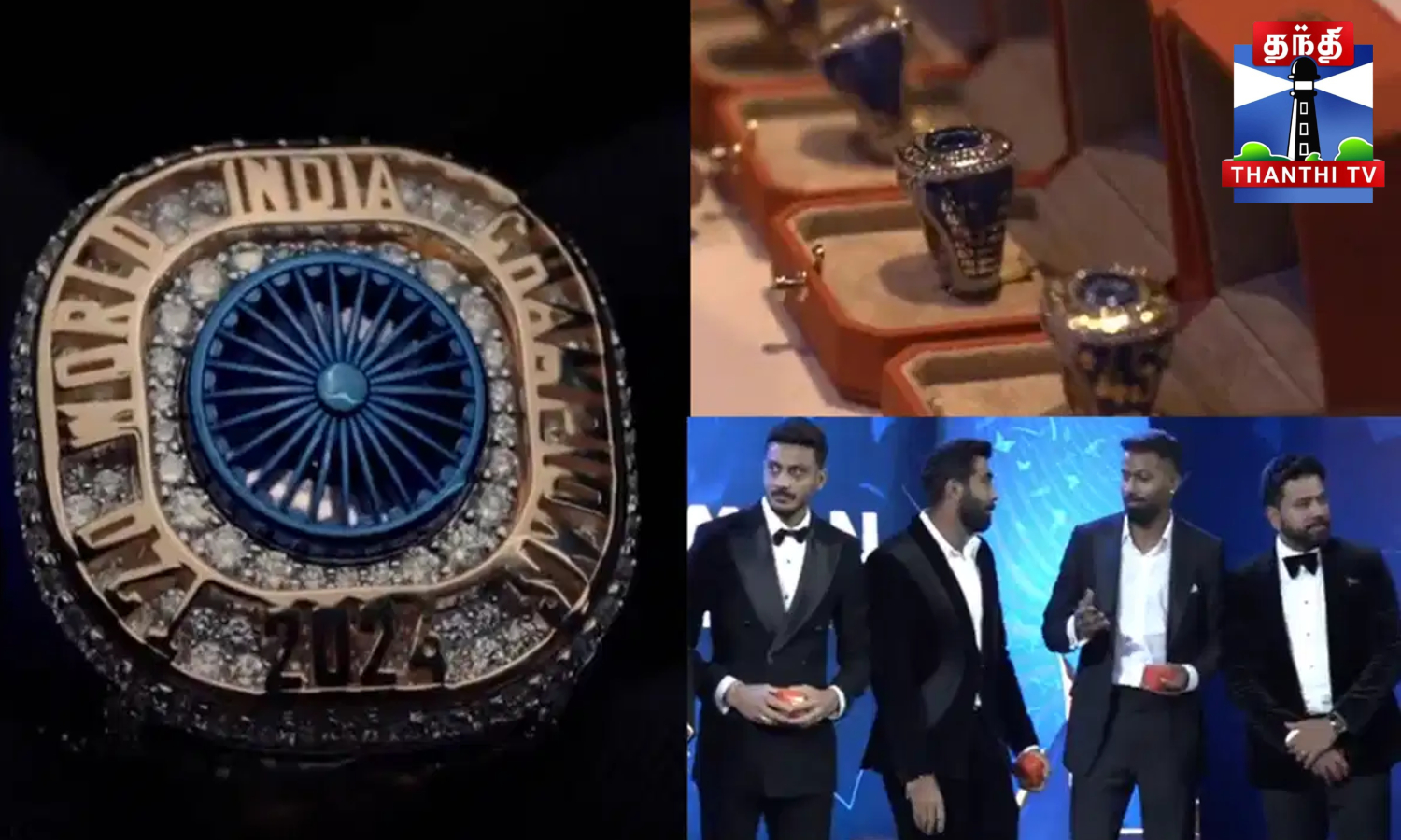 - கடந்த ஆண்டு டி 20 உலகக்கோப்பையை வென்ற இந்திய அணி வீரர்களுக்கு பிரத்யேக மோதிரத்தை வழங்கி பிசிசிஐ கெளரவித்தது. கடந்த வாரம் நடைபெற்ற நமன் Naman அவார்ட்ஸ் நிகழ்ச்சியில், டி 20 உலகக்கோப்பையை வென்ற ரோகித் சர்மா, சஞ்சு சாம்சன், சூர்யகுமார் யாதவ் உள்ளிட்ட இந்திய அணி வீரர்களுக்கு சாம்பியன்ஸ் மோதிரத்தை பிசிசிஐ பரிசளித்தது. தங்கம் மற்றும் வைரத்தாலான இந்த மோதிரத்தில், வீரர்களின் பெயர், எடுத்த ரன்கள் உள்ளிட்ட விவரங்கள் பொறிக்கப்பட்டுள்ளன. அசோக சக்கரம் மிளிர, சாம்பியன்ஸ் என பொறிக்கப்பட்ட மோதிரத்தை வீரர்களுக்கு வழங்கிய வீடியோவை தற்போது பிசிசிஐ வெளியிட்டுள்ளது.