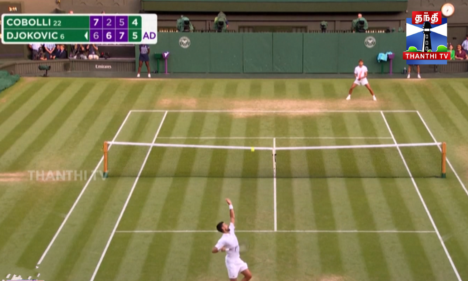 விம்பிள்டன் டென்னிஸ் தொடரின் அரையிறுதி சுற்றுக்கு செர்பிய டென்னிஸ் ஜாம்பவான் நோவக் ஜோகோவிச் (Novak Djokovic) தகுதி பெற்றுள்ளார். கிரான்ட்ஸ்லாம் டென்னிஸ் தொடரான விம்பிள்டனில், ஆடவர் ஒற்றையர் பிரிவு காலிறுதி போட்டியில் ஜோகோவிச், இத்தாலி வீரர் ஃபிளாவியோ கோபோலியை (Flavio Cobolli) எதிர்கொண்டார். அதிரடியான ஆட்டத்தால், ஃபிளாவியோ கோபோலியை 6-க்கு 7, 6-க்கு2, 7-க்கு 5 மற்றும் 6-க்கு 4 என்ற செட் கணக்கில் வீழ்த்தி ஜோகோவிச் அரையிறுதிக்கு நுழைந்தார். இதன் மூலம் அரையிறுதி சுற்றில் ஜோகோவிச்சும், இத்தாலி வீரர் ஜானிக் சின்னரும் (JANNIK SINNER) விளையாட உள்ளதால் எதிர்ப்பார்ப்பு அதிகரித்துள்ளது.