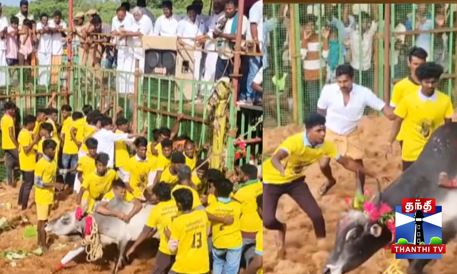 புதுக்கோட்டை மாவட்டம் மதிய நல்லூரில் உள்ள மாரியம்மன் கோயில் திருவிழாவை முன்னிட்டு நடைபெற்ற ஜல்லிக்கட்டு போட்டியில் பல்வேறு மாவட்டங்களில் இருந்து வந்த 700க்கும் மேற்பட்ட காளைகள் வாடிவாசலில் இருந்து சீறிப்பாய்ந்தன. அவற்றை அடக்க 300க்கும் மேற்பட்ட காளையர்கள் களம் இறங்கினர். வீரர்களை களத்தில் காளைகள் திணறடித்தன. இதனை பார்வையாளர்கள் ஆரவாரம் செய்து கண்டு களித்தனர்.