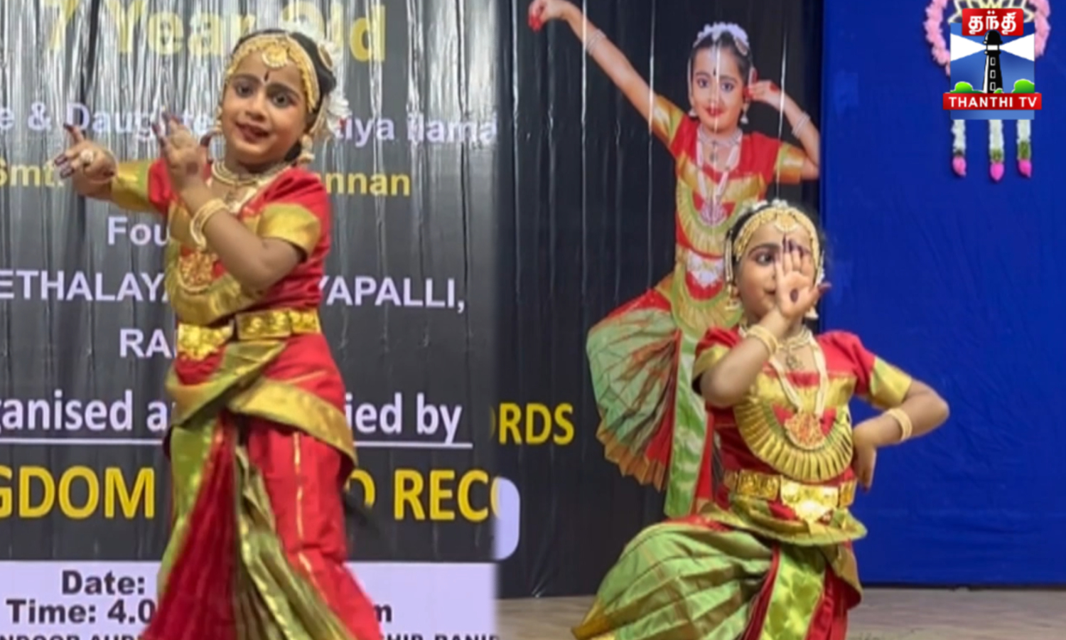 3 மணிநேரம் இடைவிடாது பரத நாட்டியமாடி 7 வயது சிறுமி உலக சாதனை