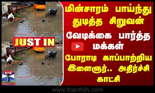 சென்னை அரும்பாக்கத்தில் கடந்த 16 ஆம் தேதி மழை நீரில் நடந்து சென்ற சிறுவன் மீது மின்சாரம் பாய்ந்து நூலிழையில் உயிர்பிழைத்த சிசிடிவி காட்சிகள் காட்சிகள் வெளியாகியுள்ளது...