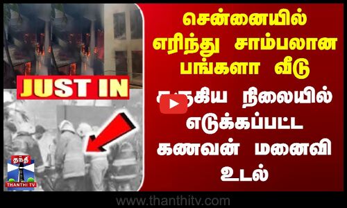 சென்னையில் எரிந்து சாம்பலான பங்களா வீடு - கருகிய நிலையில் எடுக்கப்பட்ட கணவன் மனைவி உடல்