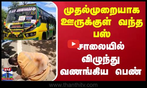 முதல்முறையாக ஊருக்குள் வந்த பஸ் - சாலையில் விழுந்து வணங்கிய பெண்