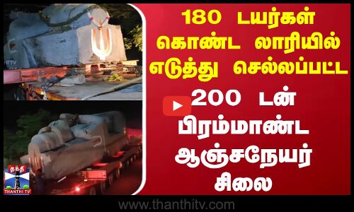 180 டயர்கள் கொண்ட லாரியில் எடுத்து செல்லப்பட்ட 200 டன் பிரம்மாண்ட ஆஞ்சநேயர் சிலை