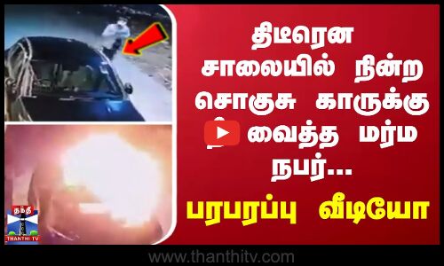 திடீரென சாலையில் நின்ற சொகுசு காருக்கு தீ வைத்த மர்ம நபர்... பரபரப்பு வீடியோ