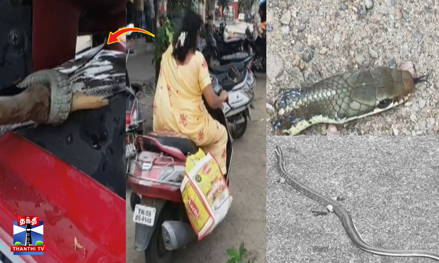 புதுக்கோட்டையில் பேக்கரி முன்பு இருசக்கர வாகனத்தை நிறுத்தியவரின் வண்டியில் நான்கடி நீளம் கொண்ட கொம்பேறி மூக்கன் பாம்பு ஏறியதால் அங்கு பரபரப்பு ஏற்பட்டுள்ளது. பிஎல்ஏ ரவுண்டானா அருகே இந்த சம்பவம் நடந்துள்ள நிலையில், பாம்பு வண்டியில் ஏறியதை பார்த்த சிலர், அந்தப் பாம்பை பிடிக்கும் முயற்சியில் ஈடுபட்டபோது பாம்பின் தலை துண்டானது. பிறகு பாம்பை அப்புறப்படுத்தியதும் அந்த பெண் வாகனத்தை எடுத்துக்கொண்டு வீட்டிற்கு புறப்பட்டார்."