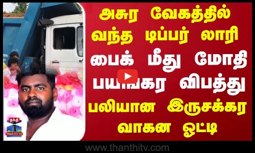 Lorry Accident || அசுர வேகத்தில் வந்த டிப்பர் லாரி..! பைக் மீது மோதி பயங்கர விபத்து..