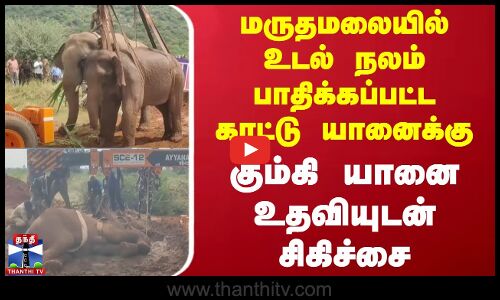 மருதமலையில் உடல் நலம் பாதிக்கப்பட்ட காட்டு யானைக்கு கும்கி யானை உதவியுடன் சிகிச்சை